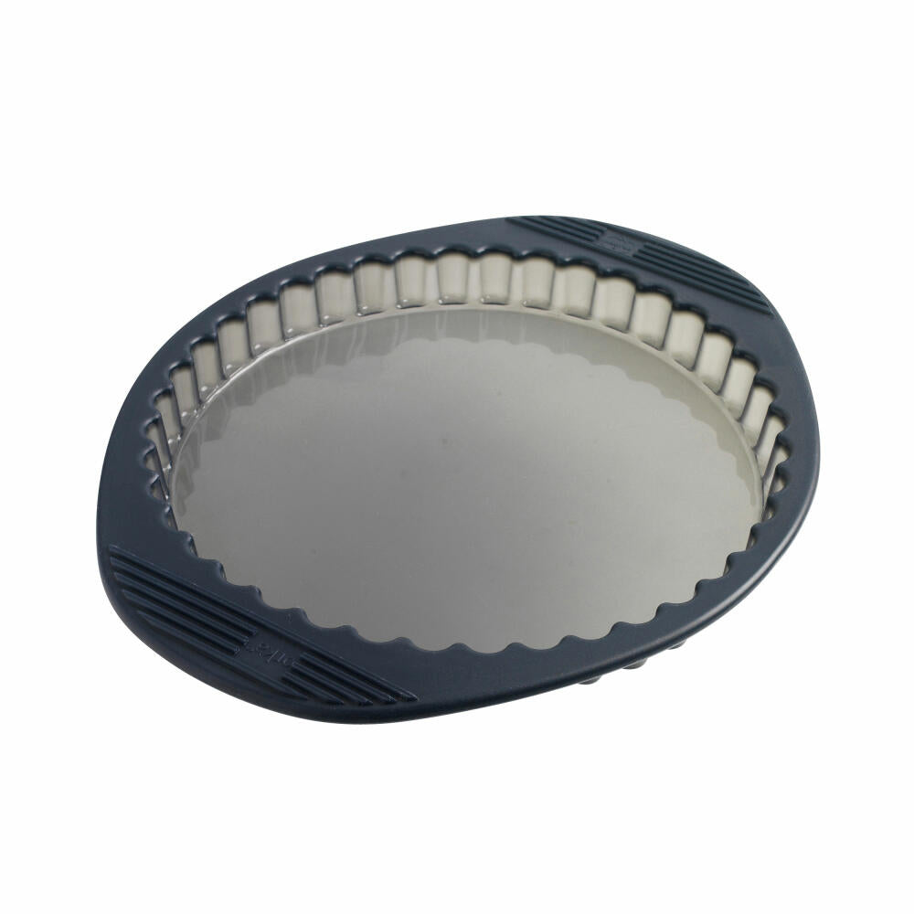 Mastrad Tartenform mit gewelltem Rand, Kuchenform, Tortenform, Backform, Silikon, Grau Transparent, 28 cm, F40914