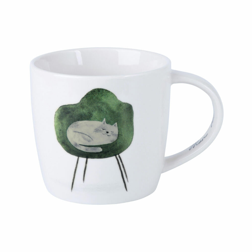 In Videoclips sind sie ohne Frage die gefeierten Superstars: Doch Mieze und Co rocken nicht nur das Internet, auch in der neuen Kollektion Felline Friends von Marc Martin sind sie die absoluten Alltagshelden. So wie diese weiße Katze, die findet: Grüne Sessel auf weiß grundierten Henkelbechern sind so bequem, dass man kaum die Augen offen halten kann. Auch zum Trinken ist der tierisch hübsche Becher natürlich top: für Kaffee, Tee, leckeren Kakao und selbstverständlich auch für (heiße) Milch.