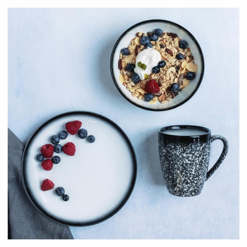 Das exzentrische Trend-Geschirr der Kollektion Caviar Granite lässt Müsli, Kaffee und Croissant zum Highlight eines jeden Morgens werden. Das Starter-Set, bestehend aus einem Becher, Teller und einer Schale überzeugt mit seiner markant strukturierten Glasur und moderner Haptik. Besonders charakterstark performt das Geschirr in Kombination mit der Kollektion Caviar Black.