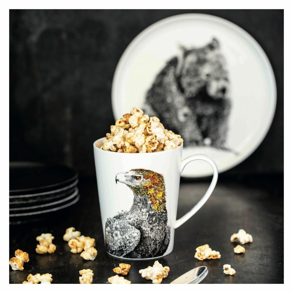 Majestätisch kreist der Adler über die abenteuerlich gedeckte Tafel: Eigentlich kann er seine tierischen Freunde auf den übrigen Tellern und Bechern aus der Marini Ferlazzo-Kollektion von Maxwell & Williams ja aus einer Entfernung von über einem Kilometer sehen. Aber: Natürlich will der König der Lüfte seinen Platz auf diesem hohen Becher einnehmen. Geliefert wird der weiße Henkelbecher aus Premium-Keramik in einer hübschen Geschenkbox.