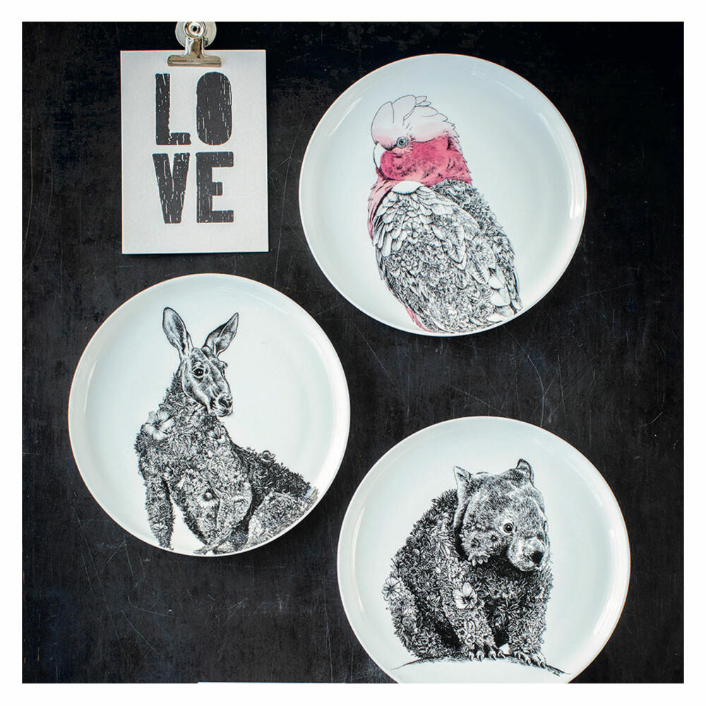 Er gilt als ausgesprochen lustiger Gesell, der wortgewandte Kakadu, der da auf seinem weißen Frühstücksteller Hof hält! So gut gelaunt wie sich all die tierischen Kameraden auf den übrigen Tellern und Bechern aus der Marini Ferlazzo-Kollektion von Maxwell & Williams um den kecken Galah in floralem Design versammeln, kann das nur stimmen. Geliefert wird der Teller aus Premium-Keramik in einer hübschen Geschenkbox.