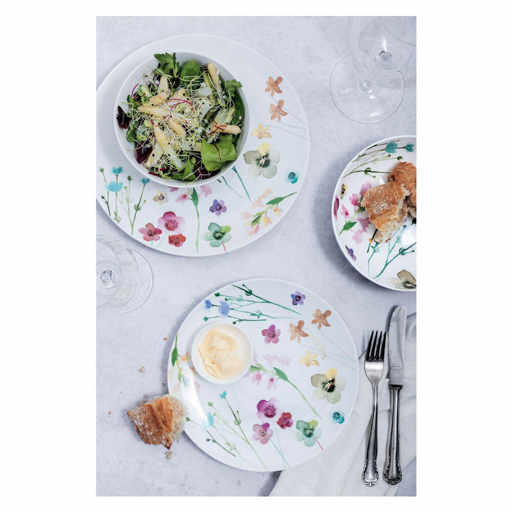 Müsli, Salat oder Suppe, leckerstes Fingerfood oder delikate Toppings, worauf haben Sie Lust? Egal welchen Favoriten Sie aus dieser bezaubernden und handlichen Schale genießen, Sie sind dabei nicht allein! Wundern Sie sich also nicht, dass Sie dabei Vogelgezwitscher hören, Blütenduft riechen und bunte Schmetterlinge um diese blumige Schüssel flattern: Übersät mit zart aquarellierten Streublumen ist der weiß grundierte Porzellanschale nämlich ein überaus fröhlicher Place to be für den Zauber der Natur! Darüber hinaus entfaltet die sommerfrische Schüssel Ihren hinreißenden Flower Power-Charme auch inmitten der eleganten Kollektion White Basics.
