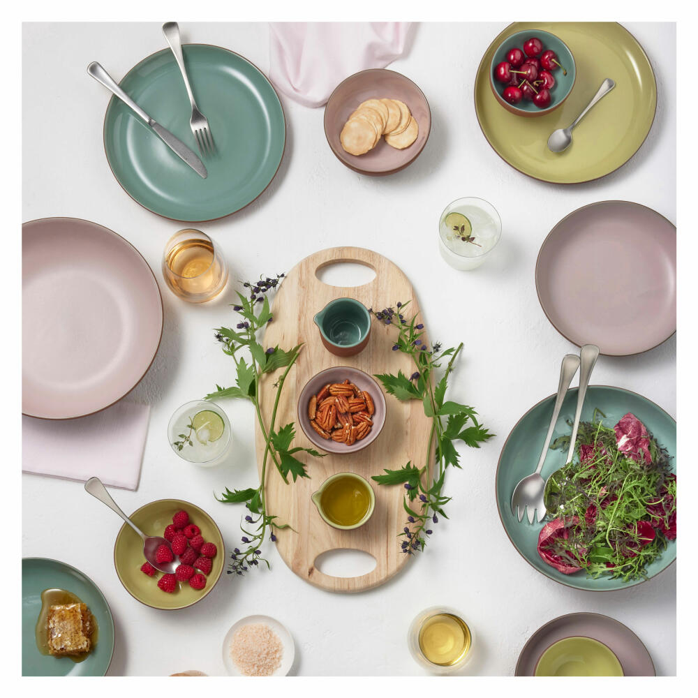 Um ein buntes Menü in harmonischer Vielfalt aufzutischen, hält die mediterran inspirierte Kollektion Sienna neben vielen Schalen und Schüsseln in verschiedenen Formaten auch Teller in zwei Größen parat. In diesem tiefen Teller stecken nicht nur wundervolle Erinnerungen an Sommer, Sonne und Meer - er eignet sich perfekt, um eine heiße Suppe, kalte Gazpachos oder einen frischen Fruchtkompott aufzutischen. Frisches Grün kleidet den handlichen Teller aus und setzt einen elegant glänzenden Kontrast zum rauen Flair der natürlich braunen Tonoberfläche.