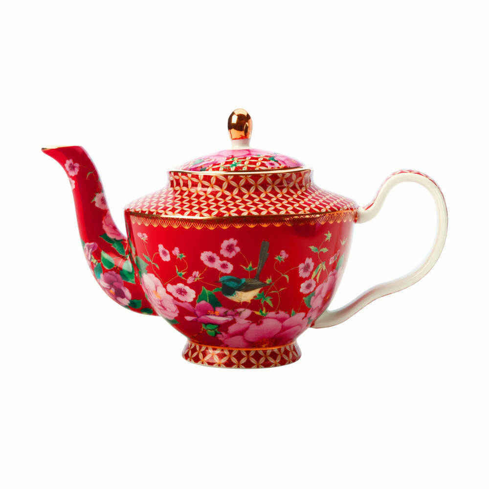 Maxwell & Williams TC Silk Road Teekanne mit Sieb, Kanne, in Geschenkbox, Porzellan, Rot, 500 ml, HV0155