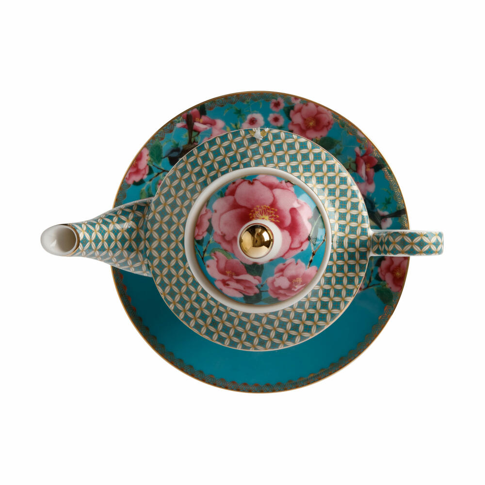 Maxwell & Williams TC Silk Road Teeservice für 1 Person, 3-tlg., Tasse, Untertasse, Kanne, Porzellan, Aqua, 280 ml, HV0158