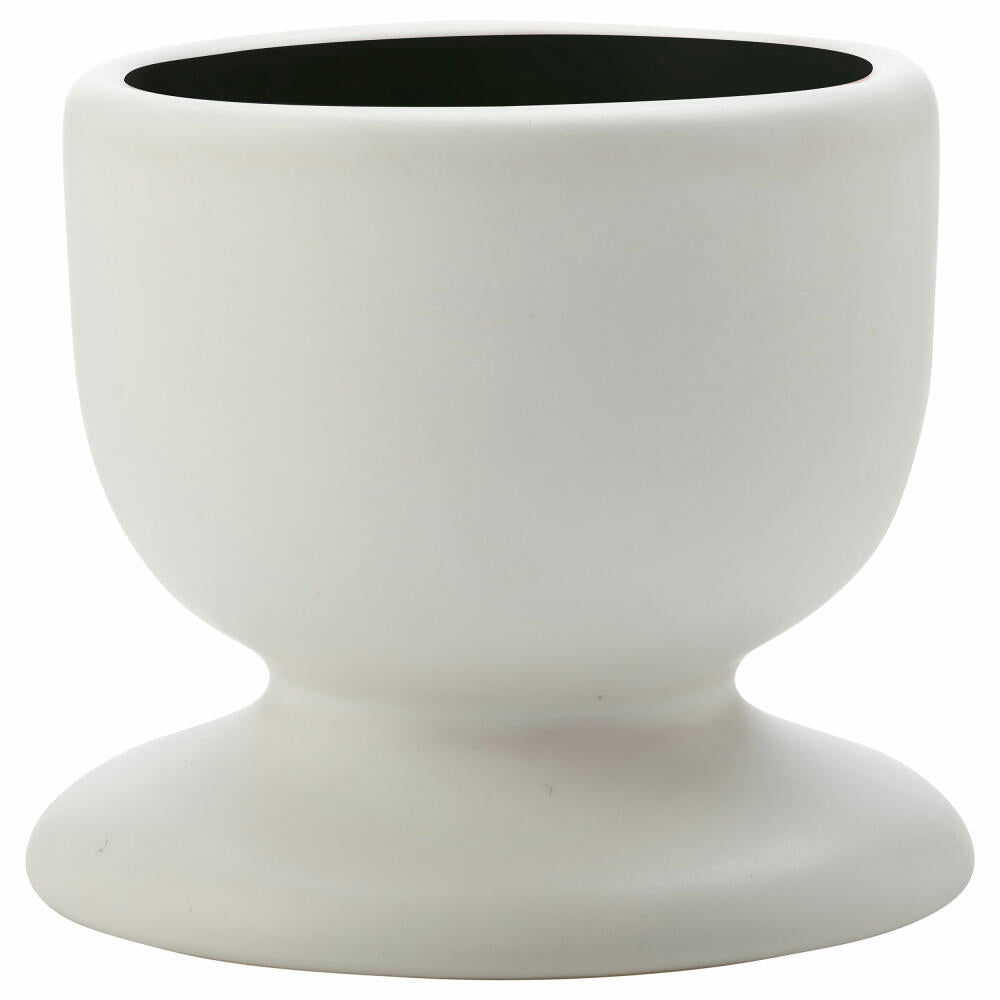 Die moderne Form macht den Eierbecher von Tint zum hübsch gestalteten Helfer am Frühstückstisch. Das Design überzeugt außen matt strukturiert in Weiß und im Innern mit einem Farbhighlight in elegantem Schwarz.