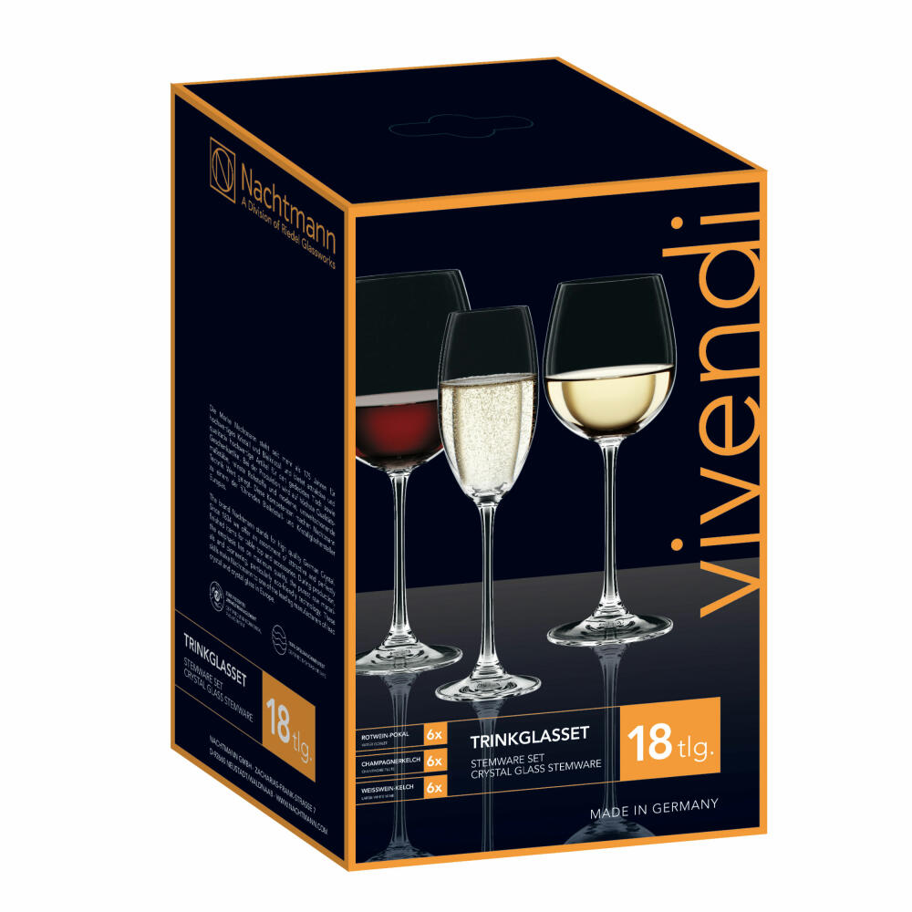 Nachtmann Vivendi Premium Gläserset, 18-tlg., Rotweinglas, Weißweinglas, Proseccoglas, Kristallglas, 0088260-0