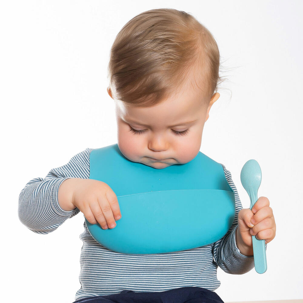reer Eat’n Tidy Silikon-Lätzchen, mit Auffangschale, Lätzchen, Babylätzchen, Silikon, Blau, 25033