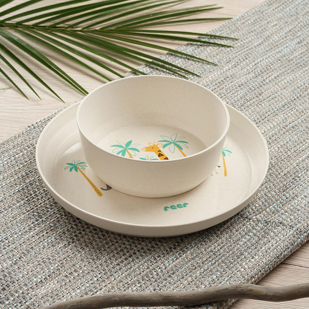 reer Growing Geschirr-Set WildLife, 5-tlg., Kindergeschirr, Teller, Löffel, Gabel, Becher, Schale, 22010