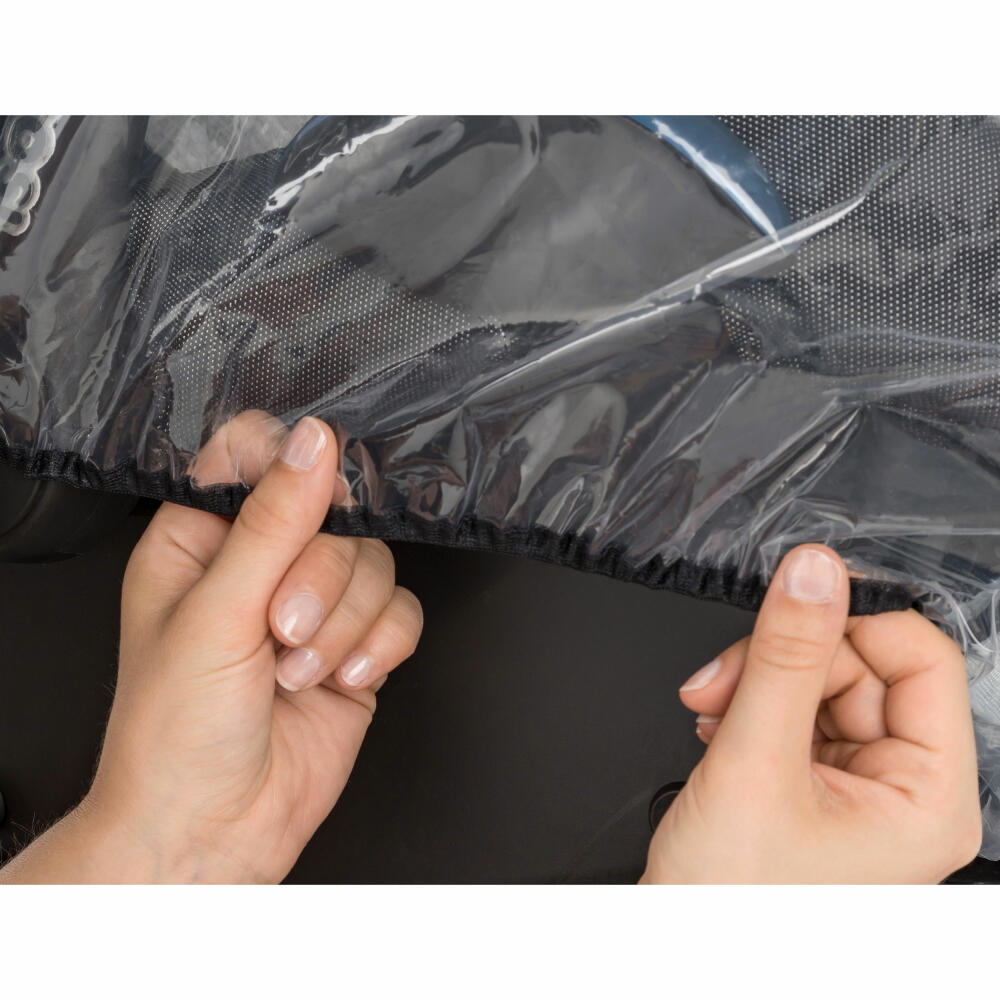 Der RainCover Baby bietet nicht nur Schutz vor Nässe und Wind, sondern überzeugt auch mit einer Reihe von nützlichen Features wie beispielsweise dem extragroßen Sichtfenster. Zusätzlich sorgt der Rundum-Gummizug für einen sicheren Halt.