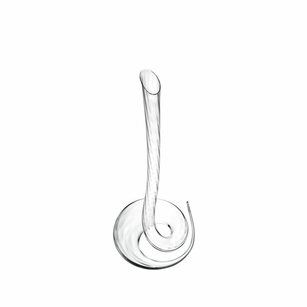 Der Cobra-Dekanter ist eine atemberaubende Weiterentwicklung des ikonischen Eve-Dekanters von RIEDEL, gefertigt um Magnumflaschen (1,5 Liter) aufnehmen zu können. Jeder Cobra Dekanter wird von einem Meisterglasbläser frei geblasen und ist ein einzigartiges sowie funktionelles Kunstwerk. Sein auffälliges Schlangendesign sorgt für eine doppelte Dekantierung des Weins, sobald dieser durch die geschwungene Glaswand fließt, und sorgt für eine kraftvolle Belüftung, die sowohl für junge als auch gereifte Weine essenziell ist. Mit seiner faszinierenden optischen Erscheinung und der eleganten Form ist der Cobra Dekanter ebenso ein visuelles Statement wie ein funktionales Meisterwerk.