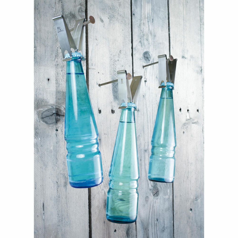 Ob große Party oder gemütlicher Fußballabend mit Freunden, ob sommerliches Grillfest oder die Schneebar im Winter - sein lässiger Auftritt setzt diesen unscheinbaren Flaschenöffner aus Edelstahl bei jedem Event wirkungsvoll in Szene! Mit einer Hand gefühlvoll auf die Flasche geklemmt, rastet Chapeau! beidseitig unter dem Kronkorken ein, bis der Deckel nach dosiertem Druck auf die Schenkel mit verblüffender Leichtigkeit von der Flasche abhebt - PROST!