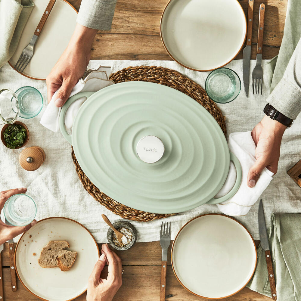 Tefal Lov Ovaler Bräter, Schmortopf, Kochtopf, Induktionsgeeignet, Gusseisen, Hellgrün, 34 cm, E25806