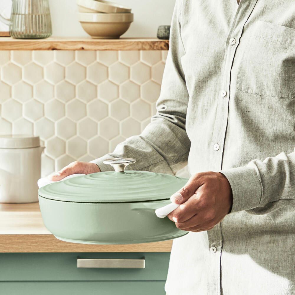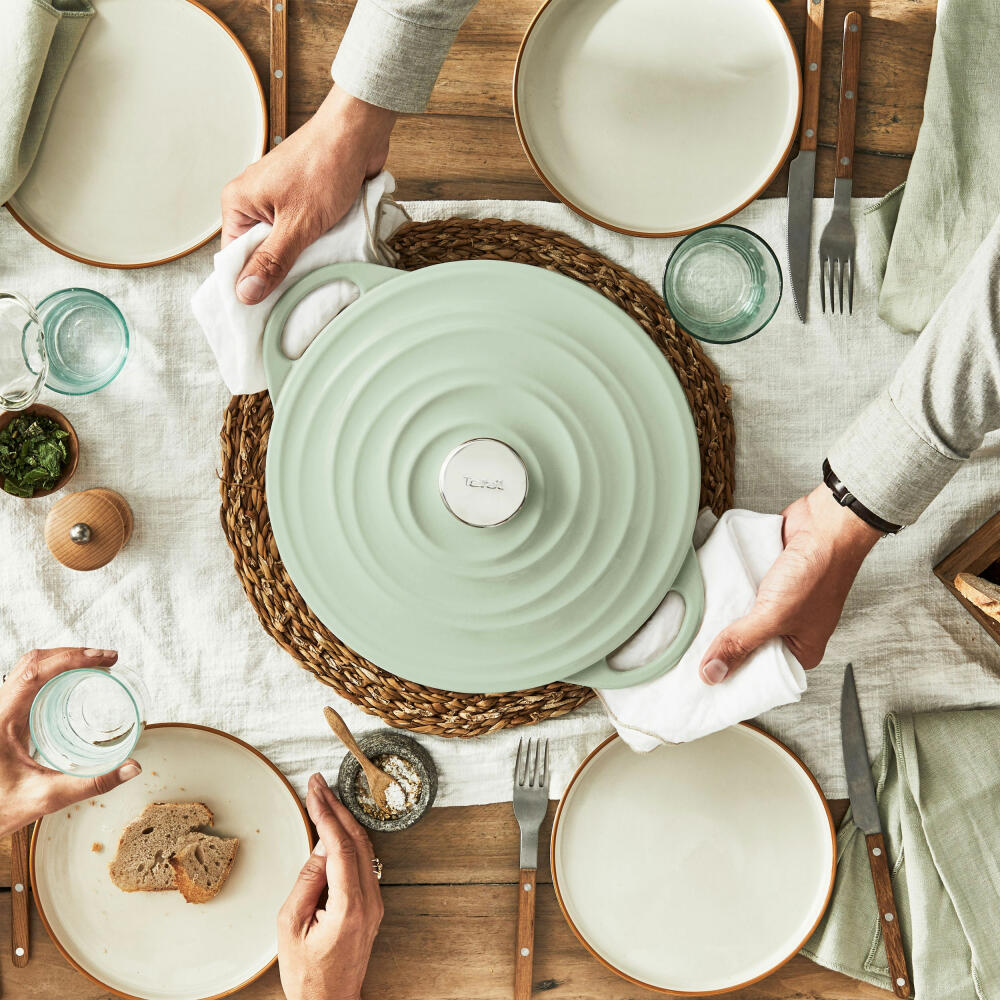 Tefal Lov Servierpfanne, Schmorpfanne, Sauteuse, Induktionsgeeignet, Gusseisen, Hellgrün, Ø 28 cm, E25872
