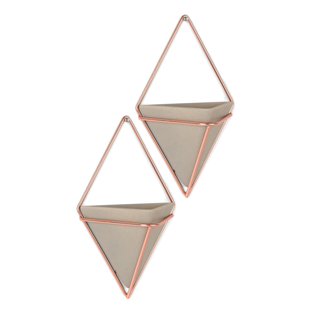 Umbra Wall Display Trigg Wand Vase, 2er Set, Blumentopf, Blumenkasten, Pflanzentopf, Übertopf, Beton / Draht, Grau / Kupfer, 470753-633