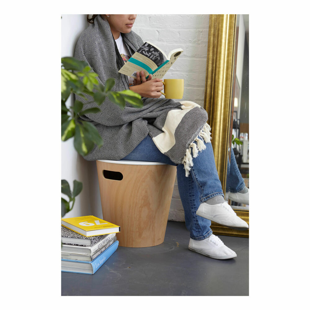 Umbra Woodrow Ottomane, 4-in-1 Möbelstück, Hocker, Aufbewahrung, Beistelltisch, Holzhocker, Holz, Weiß / Natur, 42 cm, 1009760-668